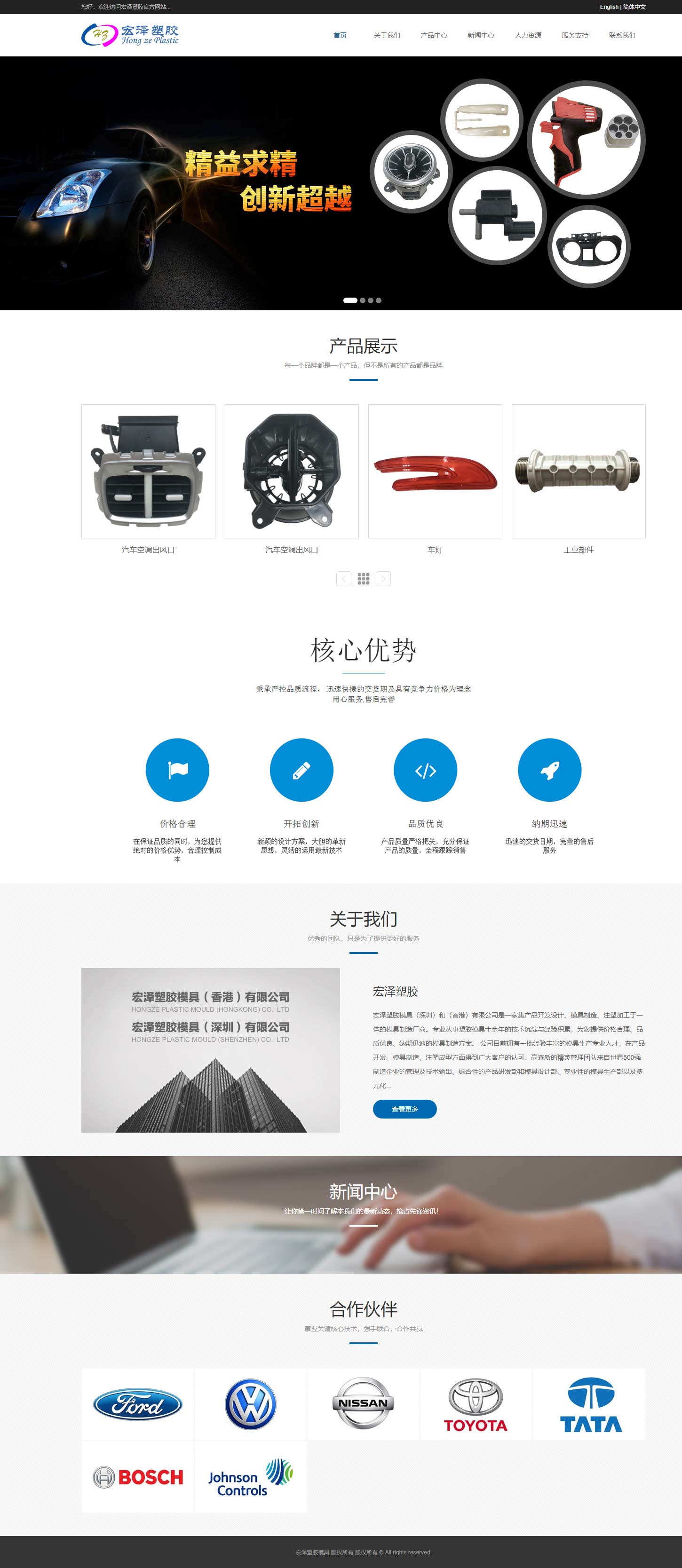 創絡科技與宏澤塑膠模具(深圳)有限公司的合作是通過網上找到公明網絡公司,其網站風格是采用原有藍色風格,并在網站風格進行了一些小修改,變成半定制版設計。網站主要是展示塑膠這塊業務,所以在大圖設計的時候要突出塑膠這個特點。