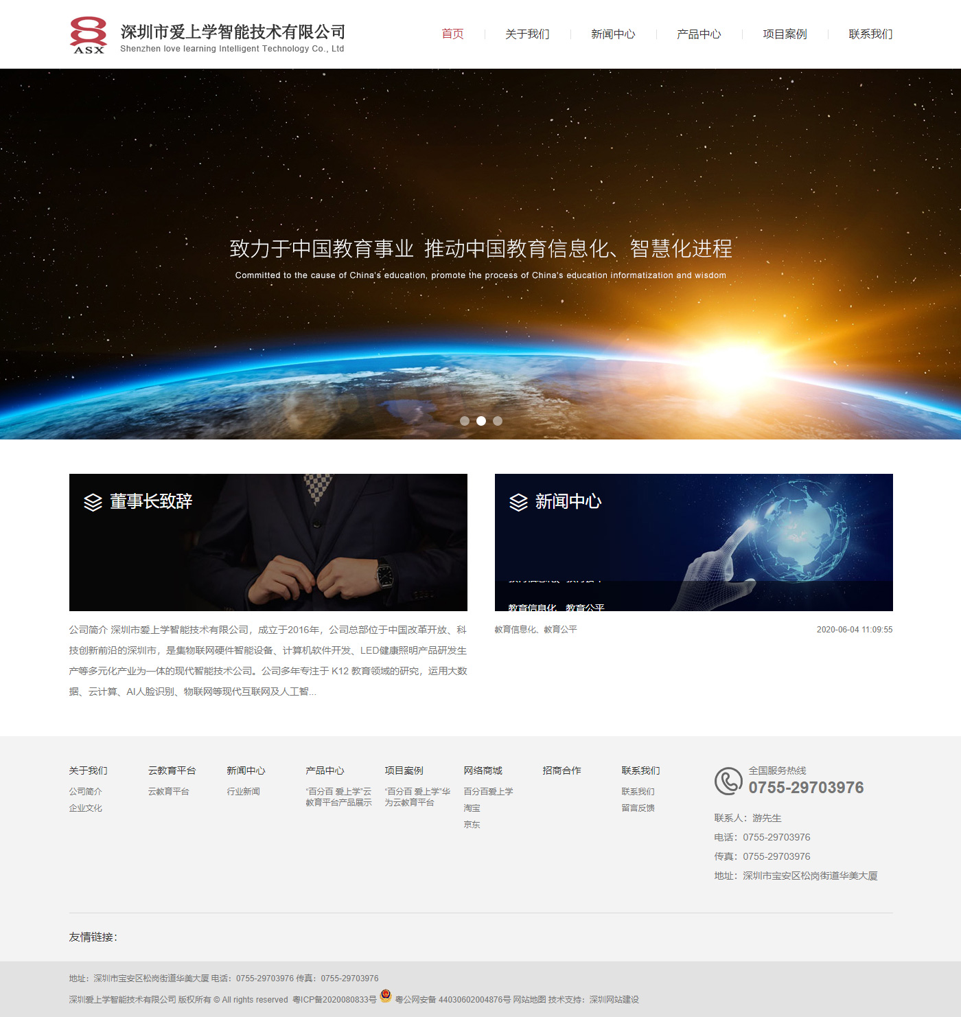 深圳市愛上學智能技術有限公司與創絡科技已經合作多年,這是第二次合作,這次網站的主色調是以紅色和黑色為主,突出紅色,給人一種積極向上的感覺。