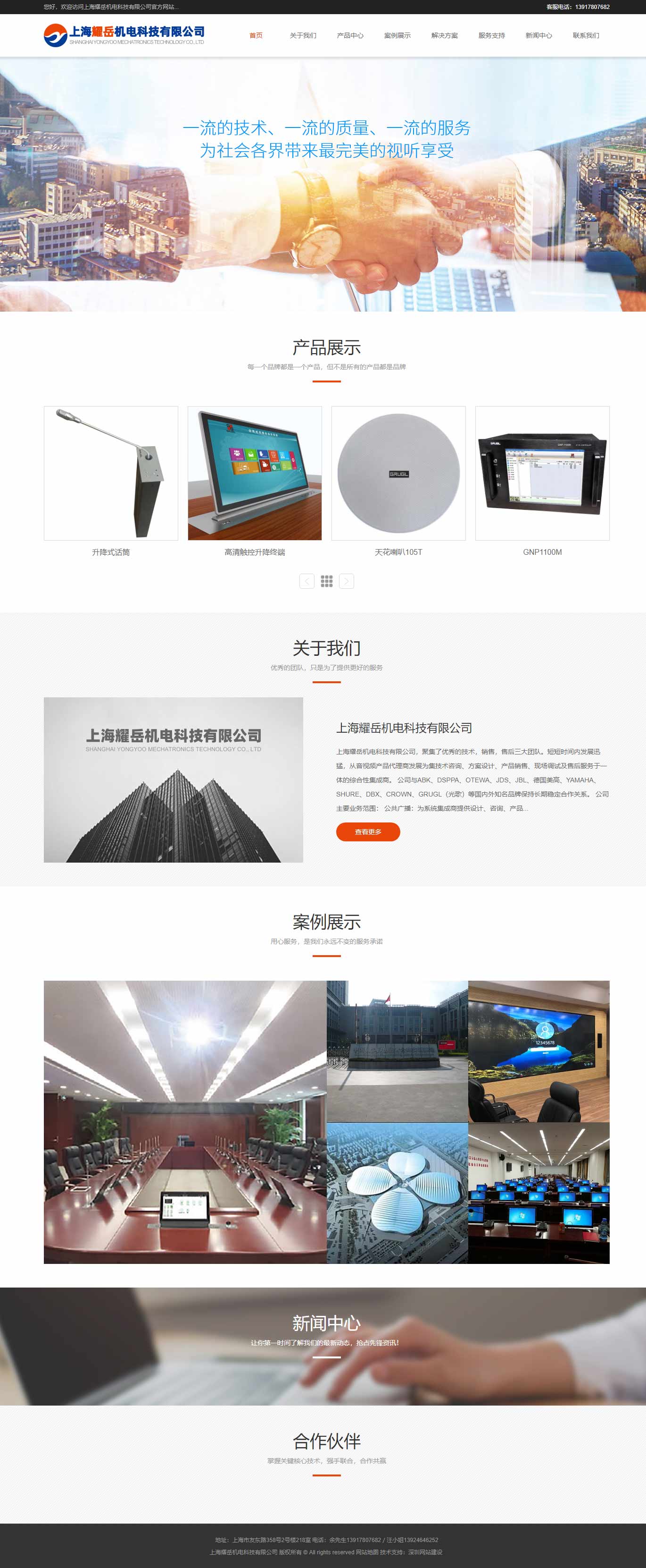 深圳網絡公司【創絡】經典企業案例之一,網站簡潔明了,讓客戶可以輕松的訪問網站,這位客戶和深圳網站建設公司創絡科技合作之后,項目都獲得了雙方的認可。 上海耀岳機電科技有限公司聚集了優秀的技術,銷售,售后三大團隊。短短時間內發展迅猛,從音視頻產品代理商發展為集技術咨詢、方案設計、產品銷售、現場調試及售后服務于一體的綜合性集成商。